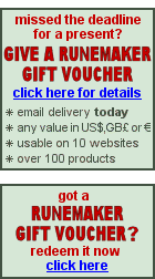 Enjoy your visit and don't forget to take a look  at my famous rune wares. An amulet or key ring makes an unusual but inexpensive gift. A hand-crafted boxed set of my casting runes as used by the professionals is a thing of beauty that you will treasure forever.